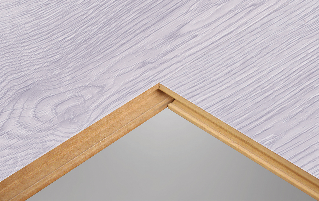 双拼的展示能够更加清楚直观地看到地板的拼接实情,地板四周采用的是模压倒角技术处理,全新切割工艺是地板四周平滑、无毛边。