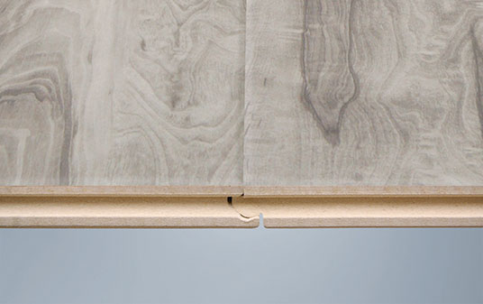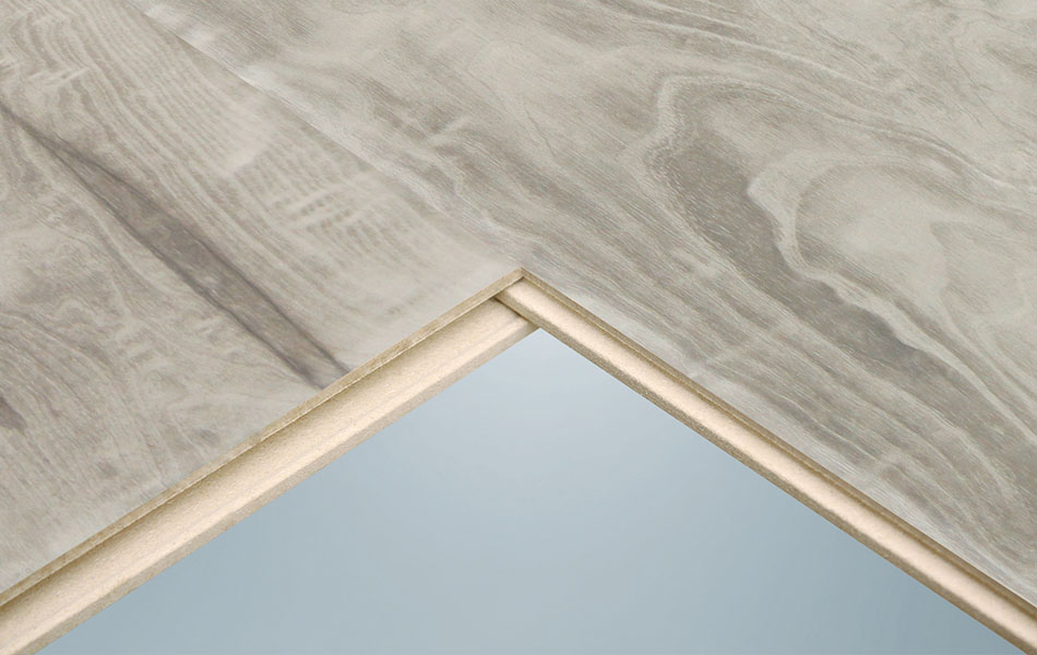 双拼的展示能够更加清楚直观地看到地板的拼接实情,采用德国生产线生产的R型槽口,不下灰、易清洁。