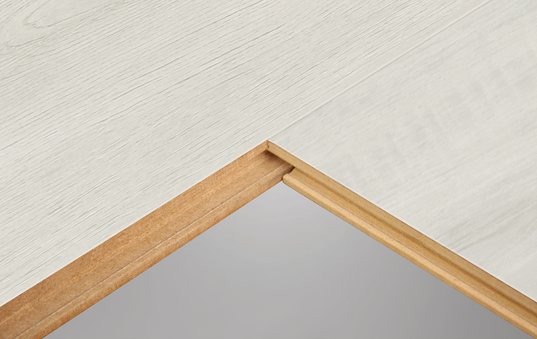 双拼的展示能够更加清楚直观地看到地板的拼接实情,地板四周采用的是模压倒角技术处理,整体铺装极具立体效果。