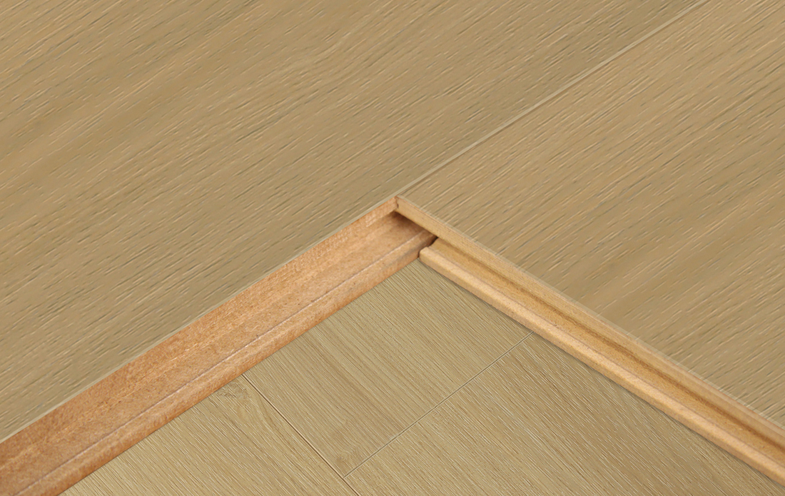 双拼的展示能够更加清楚直观地看到地板的拼接实情,采用德国生产线生产的R型槽口,不下灰、易清洁。